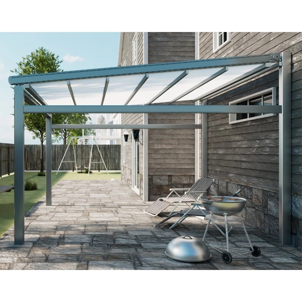 - Egyedi méretek: maximum 7 m-es bővítés, 5 m-nél hosszabb pergolák esetén egy közbenső oszlop és vezetők is hozzáadásra kerülnek.